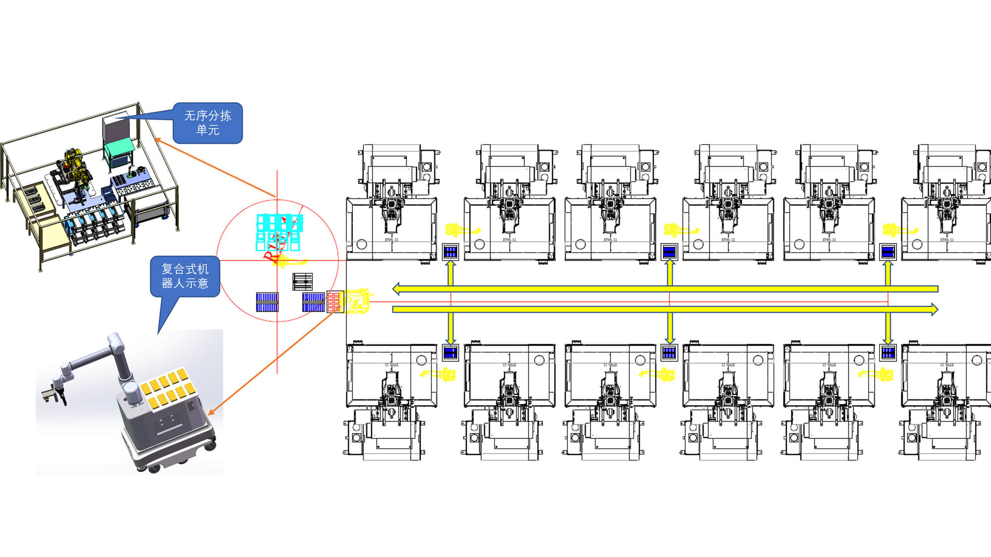 從上下料口的抽屜料倉抓取工件,移動至每臺機床進行上下料,將加工完的工件下料至抽屜料倉